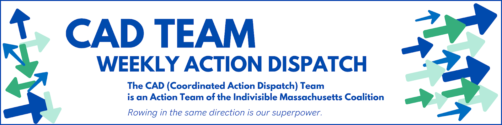 The CAD (Coordinated Action Dispatch) Team is an Action Team of Indivisible Massachusetts Coalition.