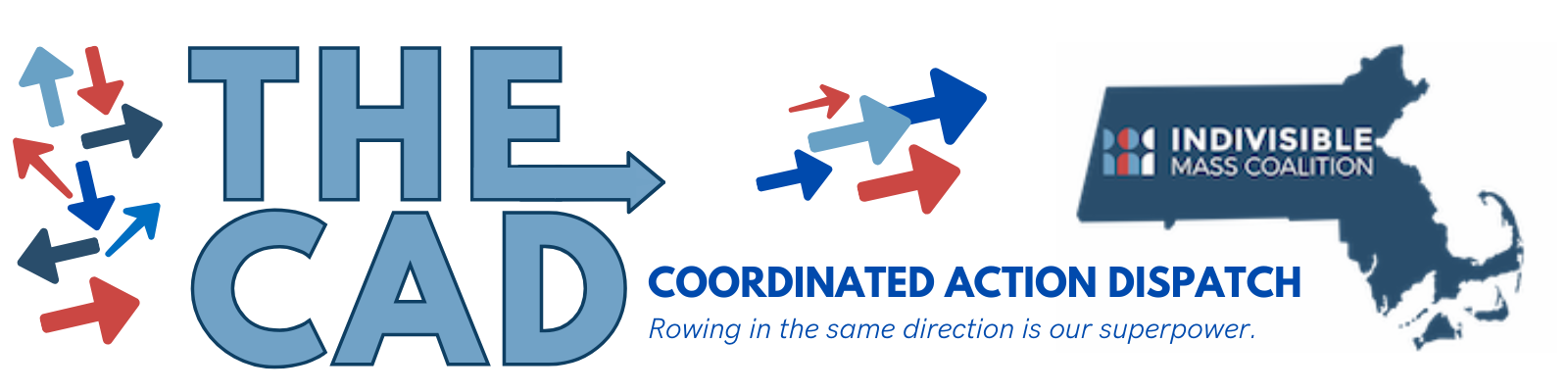 The CAD (Coordinated Action Dispatch) Team is an Action Team of the Indivisible Massachusetts Coalition (IMC).