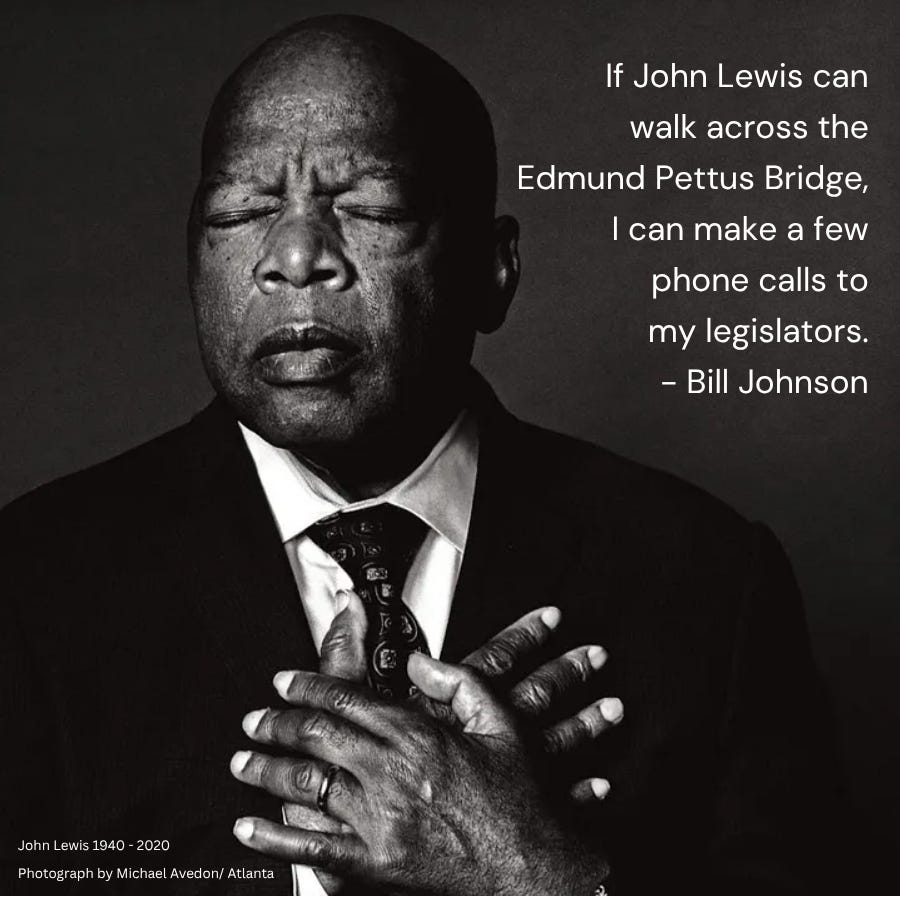 On 7/17/25, Indivisible groups across the country came out to honor the 5th anniversary of John Lewis’ death (7/17/20) by protesting under the name of “Good Trouble Lives On!”