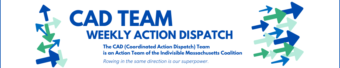 The Coordinated Action Dispatch (CAD) Team is an Action Team of Indivisible Massachusetts Coalition (IMC).